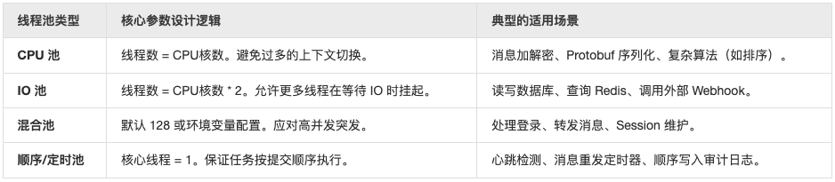 在实际的环境中,可能存在各种各样的不同任务。这个类根据任务的性质(CPU 密集 vs IO 密集)进行了科学的隔离,这是防止系统由于某个耗时操作导致全盘瘫痪的关键。