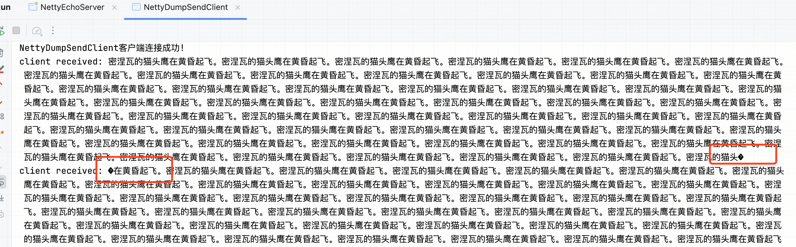 - 读到多个客户端的ByteBuf输入,但是“粘”在了一起。