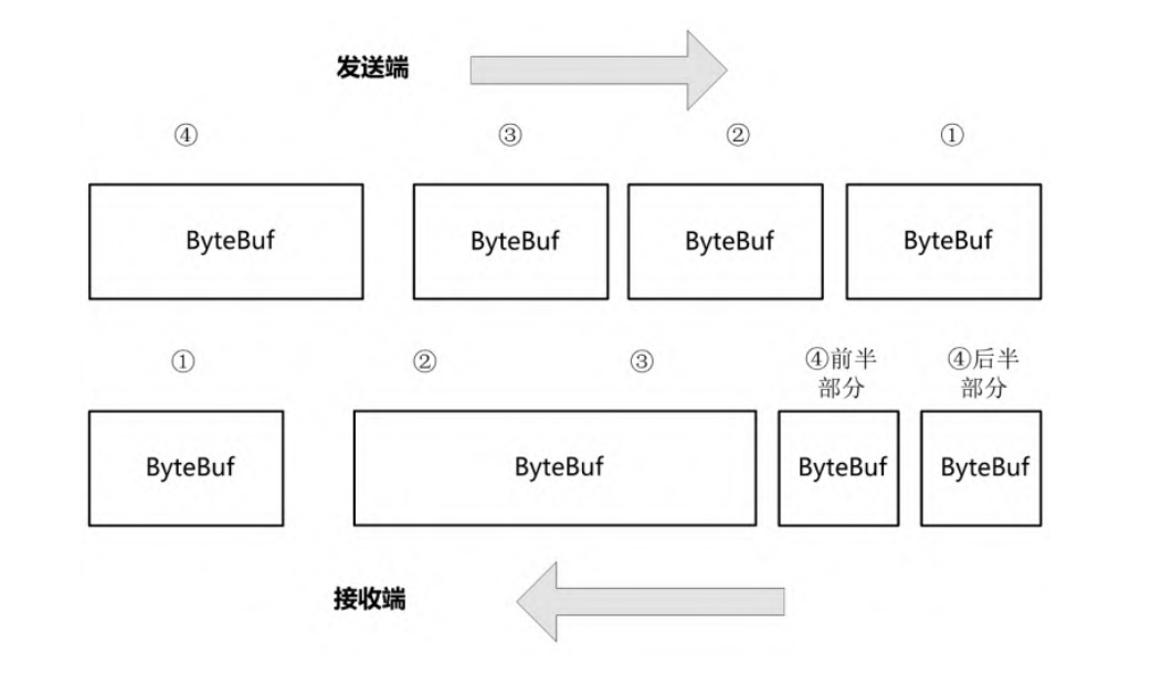 在发送端 Netty 的应用层进程缓冲区中,程序以 ByteBuf 为单位来发送数据,但是到了底层操作系统内核缓冲区,底层会按照协议的规范对数据包进行二次封装,封装成传输层的协议报文,再进行发送。 在接收端收到传输层的二进制包后,首先复制到内核缓冲区,Netty读取ByteBuf时才复制到应用的用户缓冲区。在接收端,当Netty程序将数据从内核缓冲区复制到用户缓冲区的 ByteBuf时,问题来了: