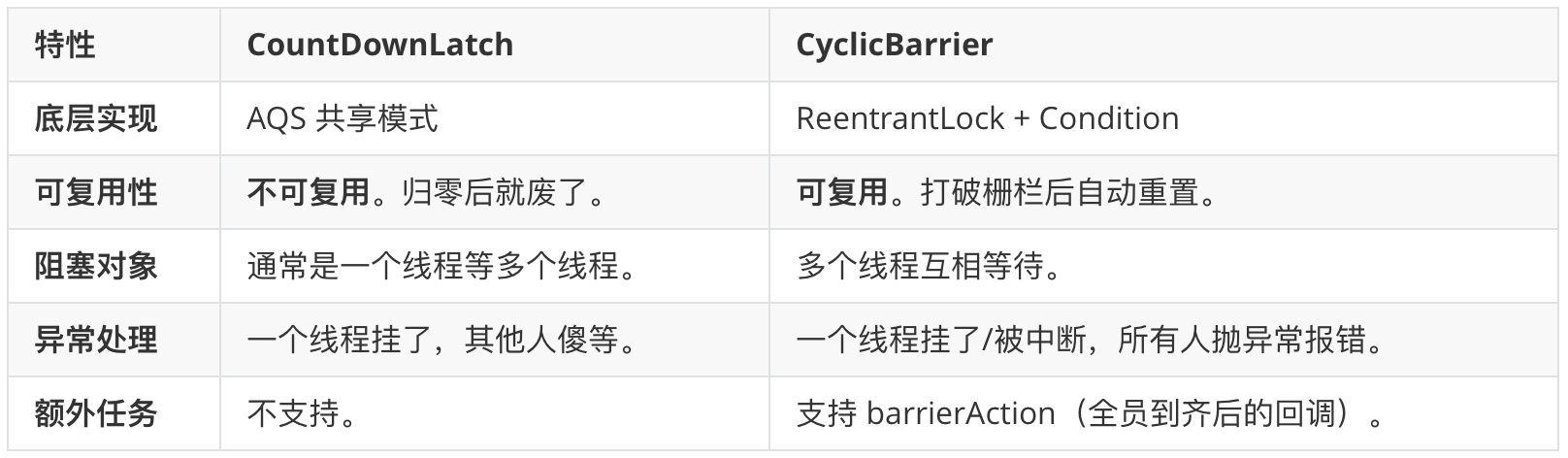 CyclicBarrier 通常用于 “多线程分步协同计算” 的场景。