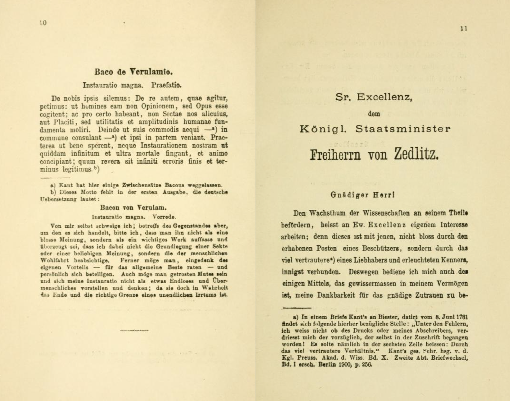 冯·策特里茨不仅是普鲁士的国务大臣,更是腓特烈大帝麾下最坚定的启蒙推手。在第一版出版前,策特里茨曾亲自邀请康德去哈勒大学担任名誉教授(待遇极高),但康德这个最宅的男人,为了守住哥尼斯堡的宁静,拒绝了。然而策特里茨并未因此动怒,反而继续支持他的研究。这篇献辞,是康德在用最传统的方式,偿还这份最稀缺的 “知遇之恩”。