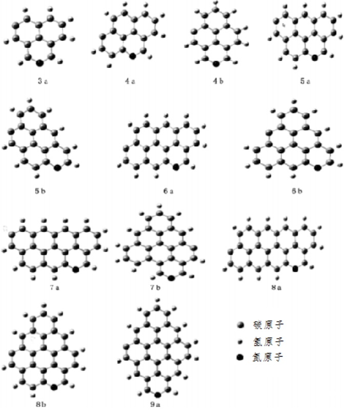 石墨烯是由碳原子组成的六角蜂窝状二维晶格,它具有比表面积大、电子迁移率高、质量密度小、高化学惰性和高热稳定性等优异性能。当石墨烯尺寸的减小到10 nm以下,它被被称之为石墨烯量子点(GQDs)。研究表明[1,2], GQDs具有与石墨烯相同的晶格结构。因此GQDs除了具备石墨烯的优异性能,还表现出独特的量子约束及边界效应,从而具有更独特的物理性质。如果没有其他表面钝化剂的修饰,GQDs表面通常有一些含氧基团,含氧基团的多少和种类与GQDs生长的条件密切相关。可溶的GQDs在室温下同时具有光致发光现象和磁性,这与石墨烯有相同的光学特性。因而,大量的理论研究对GQDs的微观结构进行假设和模拟,归结起来,主要的结构模型如图1.1所示。