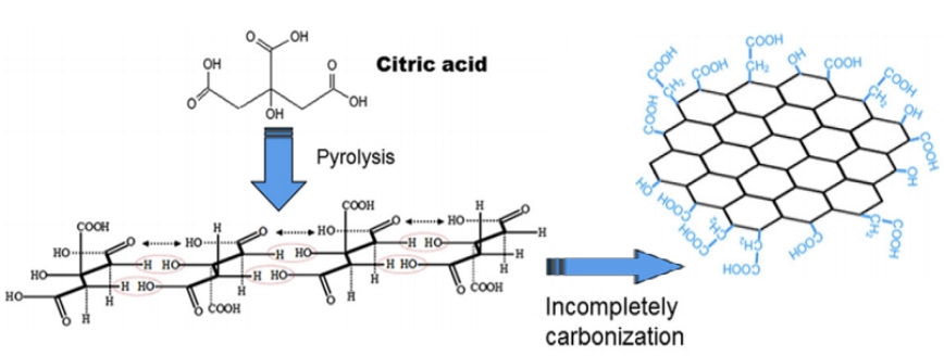 图2.1 柠檬酸热分解法合成GQDs的原理图[20]