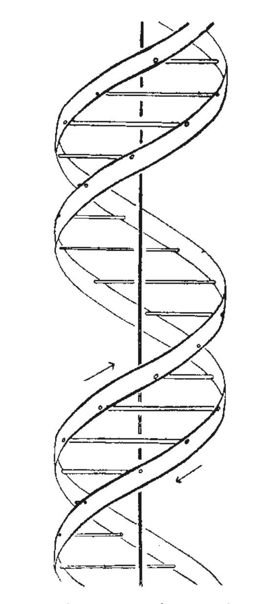 虽然脱氧戊糖核酸(DNA)的生物学特性暗示其分子结构极其复杂,但本文描述的 X 射线衍射研究表明,其基本分子构型其实非常简单 。本通讯的目的在于初步描述一些实验证据,证明多核苷酸链的构型是螺旋状的,并且在自然状态下也以这种形式存在 。更详细的工作报告将于近期发表 。